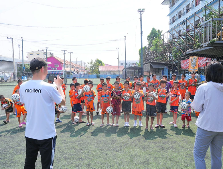 ส่วนหนึ่งของยอดขายชุด MY FOOTBALL KIT จะถูกบริจาค เราจะส่งมอบชุด MY FOOTBALL KIT ให้กับเด็ก ๆ ที่ต้องการความช่วยเหลือร่วมกับพันธมิตรของเรา